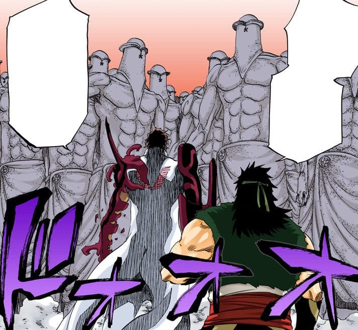 As for everything else Chad actually got a chance to shine by staying behind to deal with the statues that have come to life which I admit I didn't see coming. And while I like his dialogue and willingness to fight I don't think we'll see much of him now since he is just fighting cannon fodder. That has been the major problem with this arc is that there have been too many characters that have been wasted and have barely done anything. Like the Vizards, Shinji in particular who hasn't fought for long, won a fight and just seems to be defeated by one move all the time now, I don't know what the hell Ginjo and the other Fullbringers are doing and where is Uryu's father been in an arc that has been about Quinces? I think the major problem with this arc is that there have been too many good guys and Kubo has been too afraid to kill them off. For example I really admired Kubo when I thought he killed off a popular character like Toshiro but no he brought him back and he is taking over the Gerard fight when it could have been the Vizards time to shine. If you want to go back even further why couldn't Kubo let BG9 win against Soi Fon? He could have fought another day then against another Soul Reaper, Vizard or even a Fullbringer but no he was killed off along with Cang Du when the two could have done way more. Finally many Sternritter where defeated off screen by Byakuya and then killed by the Auswahlen; these included NaNaNa, Robert, Candice and Meninas, four Sternritter who haven't had a proper fight this whole arc and never will now. Sorry for the rant but it is just something that has really been annoying me throughout this whole arc.